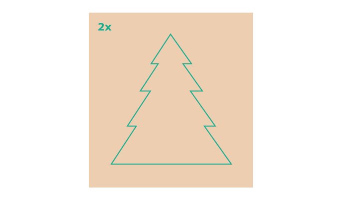 Paimk du kartono lakštus ir nukirpk juos iki norimo dydžio kartoninei eglutei. Ant kiekvieno nupiešk Kalėdų eglutės formą.