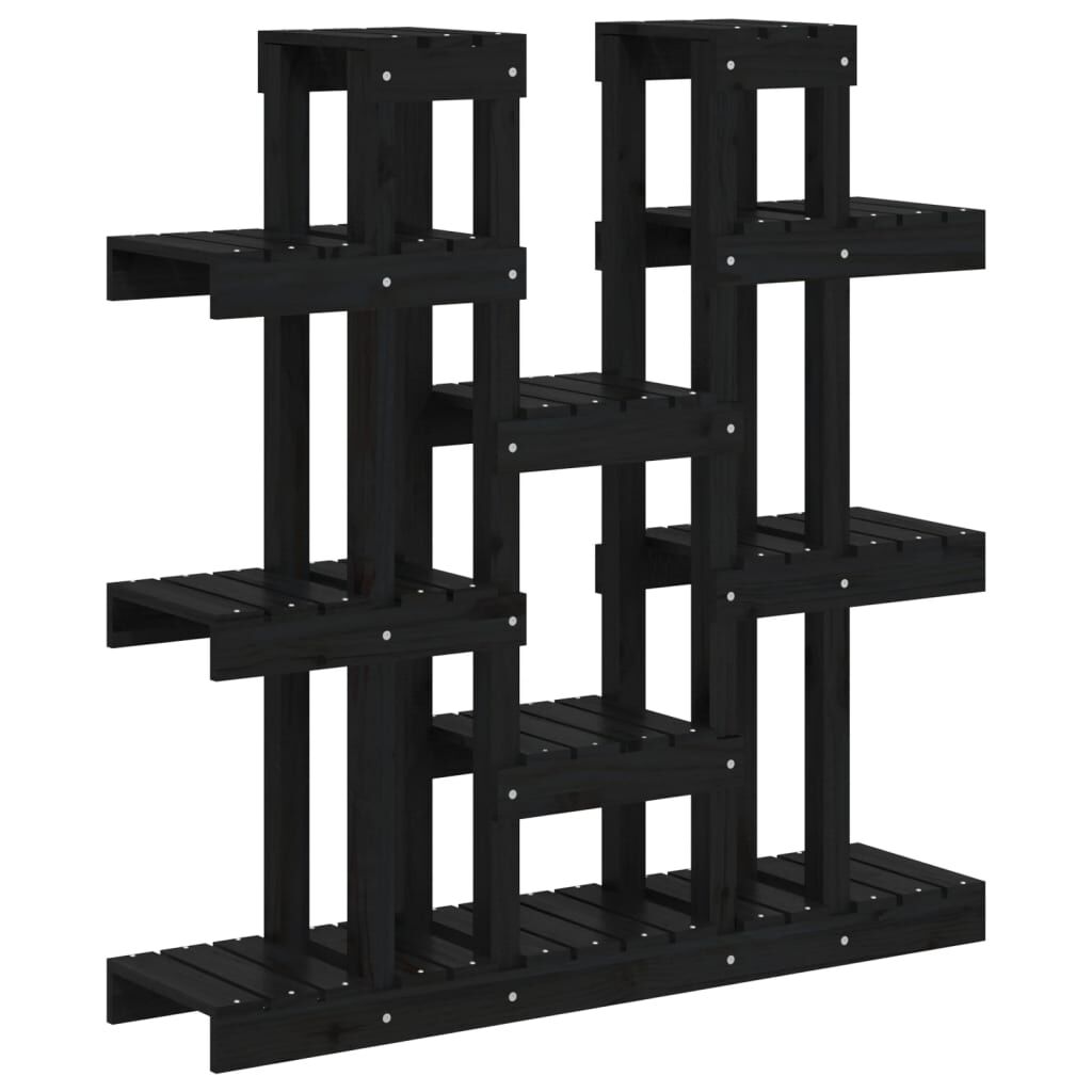 vidaXL Augalų stovas, juodas, 104,5x25x109,5cm, pušies masyvas