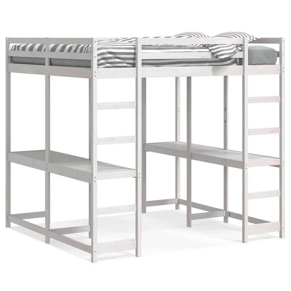 vidaXL Aukšta lova su rašomuoju stalu ir kopėčiomis, balta, 140x200cm