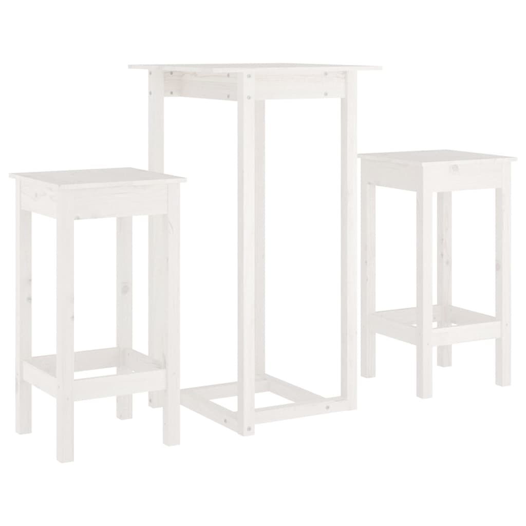 vidaXL Baro baldų komplektas, 3 dalių, baltas, pušies medienos masyvas