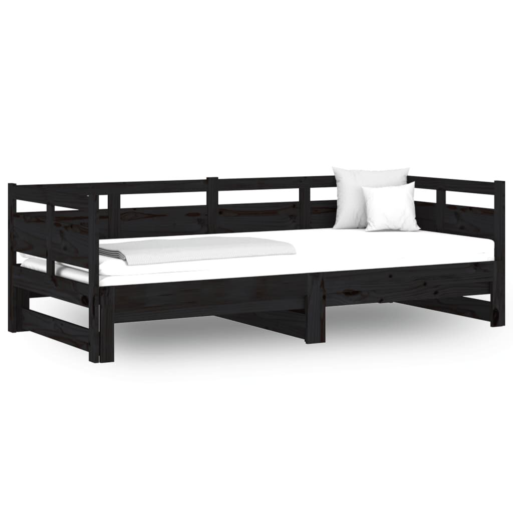vidaXL Ištraukiama lova, juoda, 2x(80x200)cm, pušies medienos masyvas
