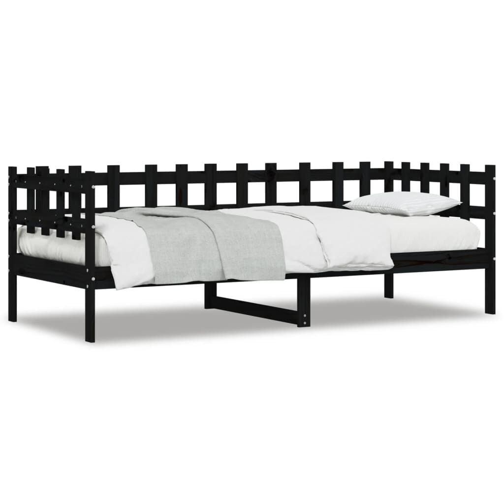 vidaXL Lova, juodos spalvos, 90x190cm, pušies medienos masyvas