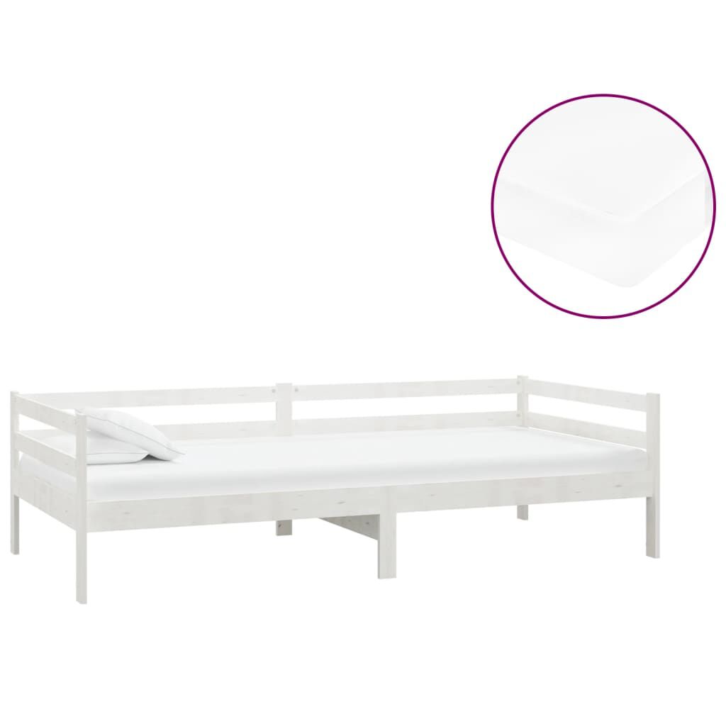 vidaXL Lova su čiužiniu, balta, 90x200cm, pušies medienos masyvas