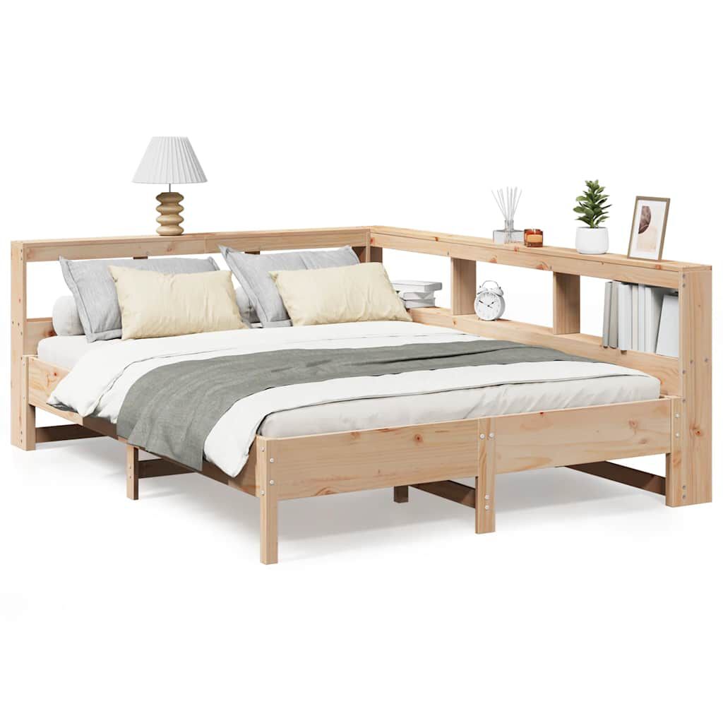vidaXL Lova su knygų spinta be čiužinio, 150x200cm, pušies masyvas