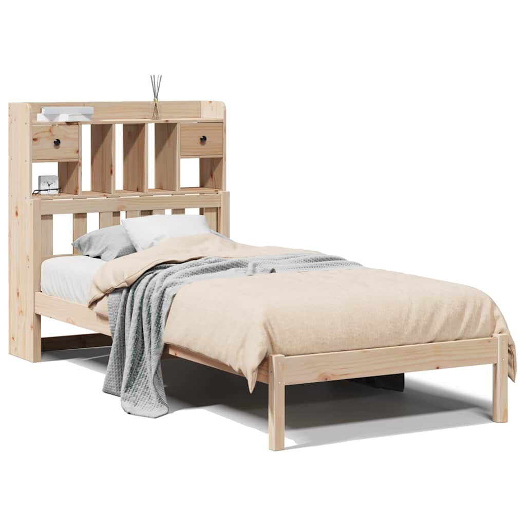 vidaXL Lova su knygų spinta be čiužinio, 90x190cm, pušies masyvas