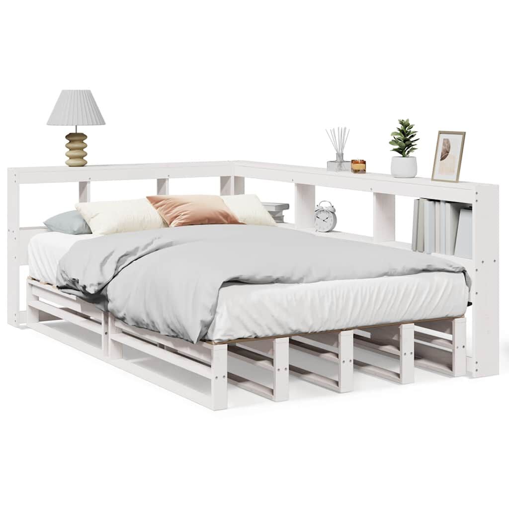 vidaXL Lova su knygų spinta be čiužinio, balta, 120x200cm, pušis