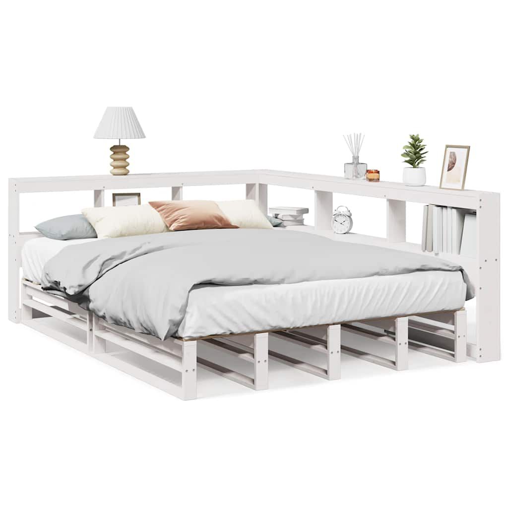 vidaXL Lova su knygų spinta be čiužinio, balta, 135x190cm, pušis