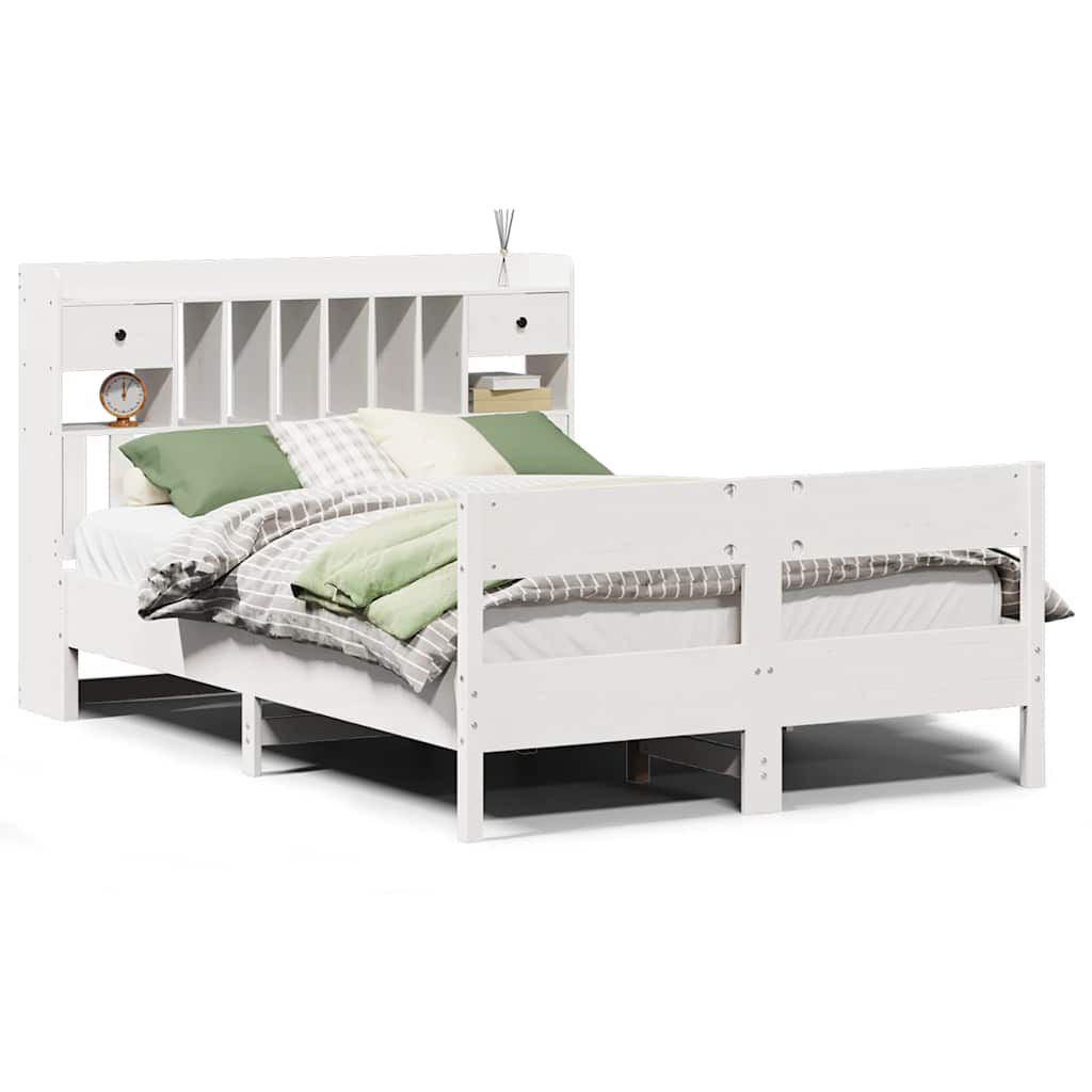 vidaXL Lova su knygų spinta be čiužinio, balta, 140x200cm, pušis