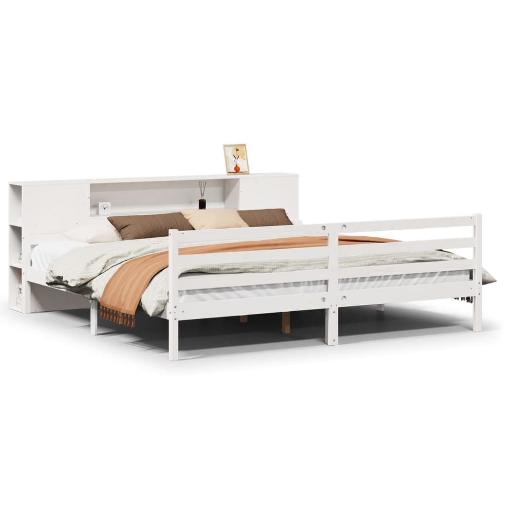 vidaXL Lova su knygų spinta be čiužinio, balta, 180x200cm, pušis