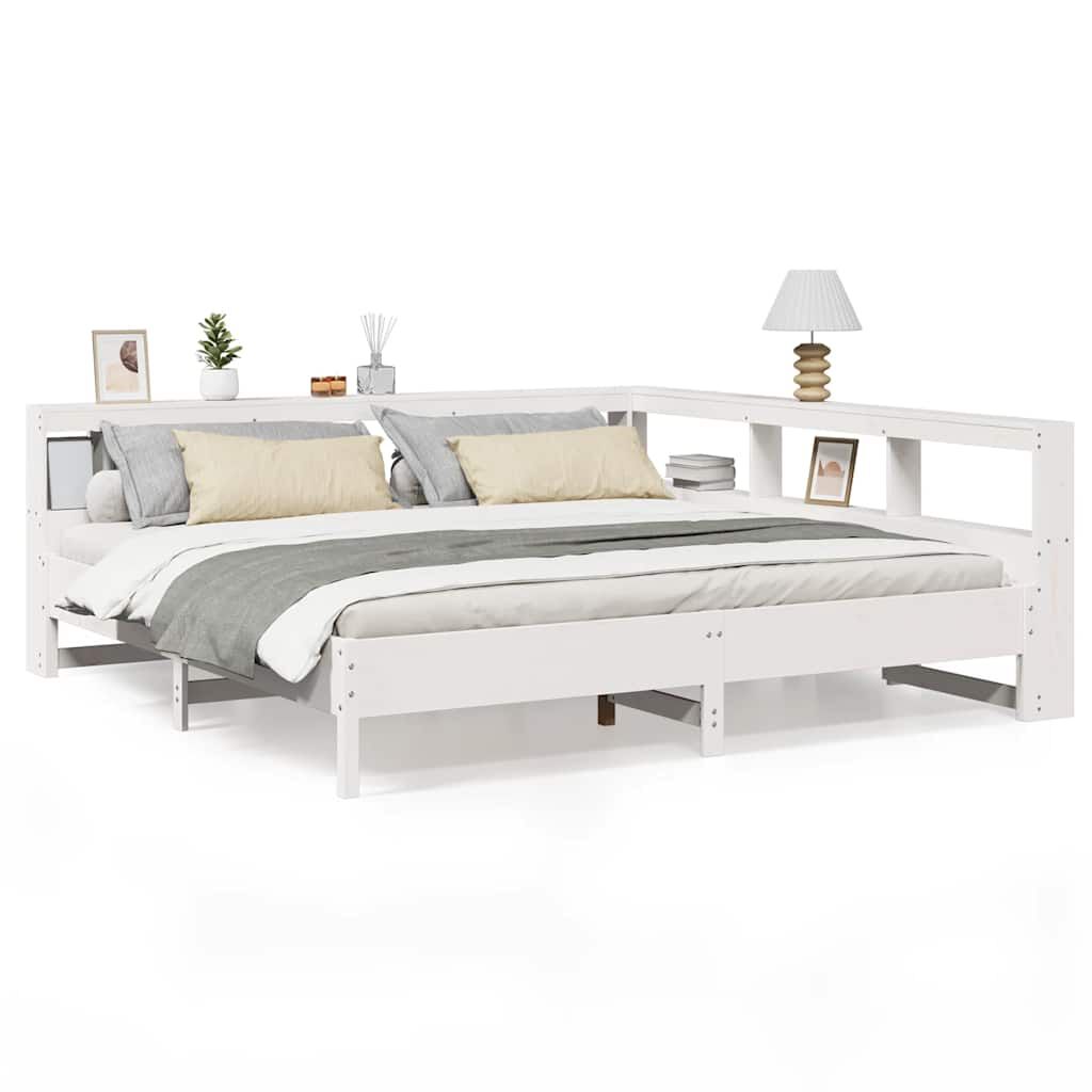 vidaXL Lova su knygų spinta be čiužinio, balta, 180x200cm, pušis
