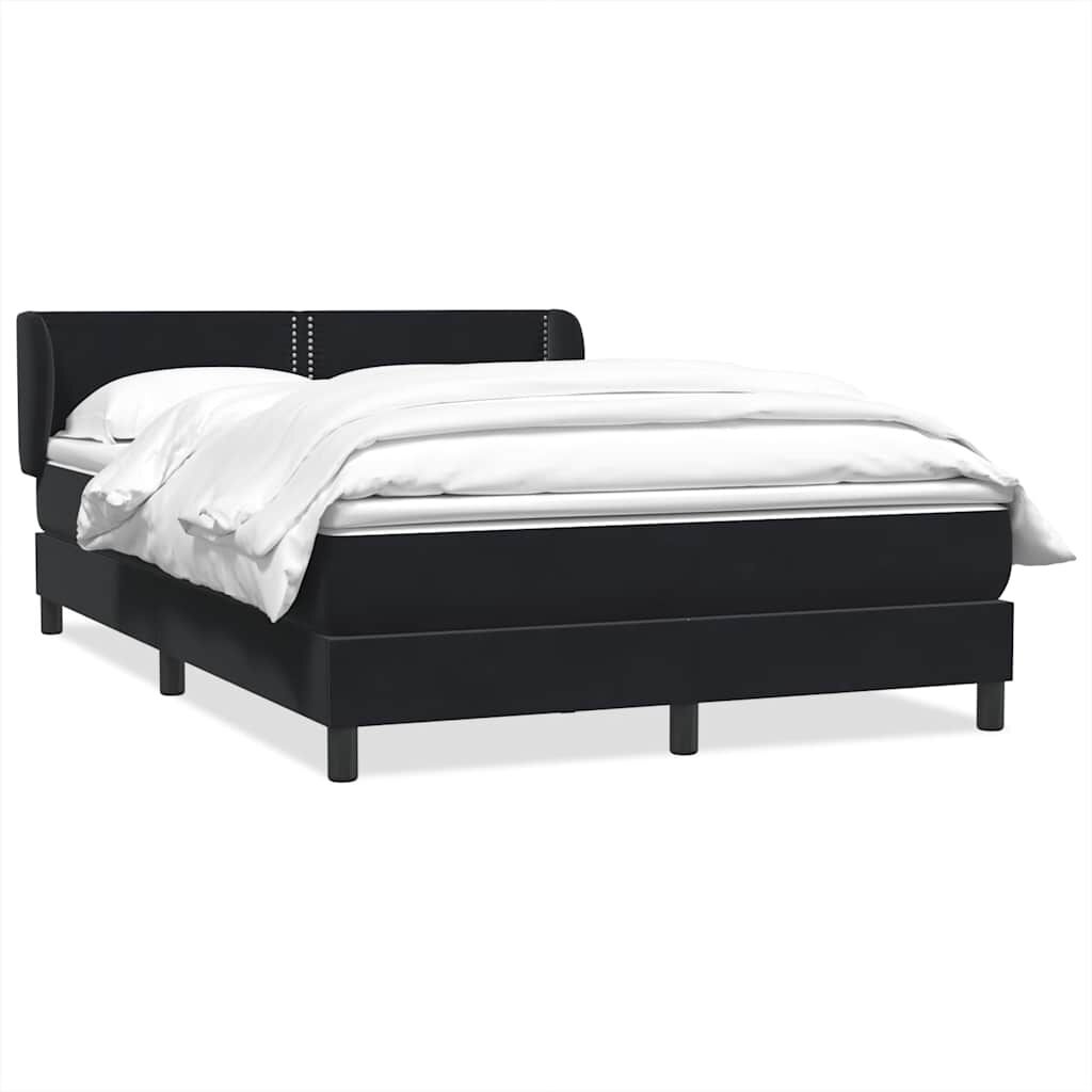 vidaXL Lova su spyruoklėmis ir čiužiniu, juoda, 140x210 cm, aksomas