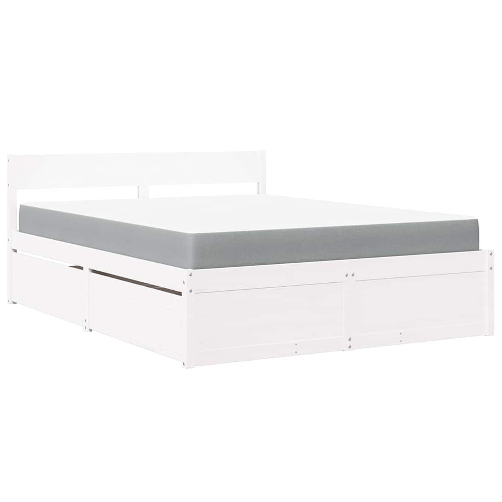 vidaXL Lova su stalčiais ir čiužiniu, baltas, 140x200cm, pušis