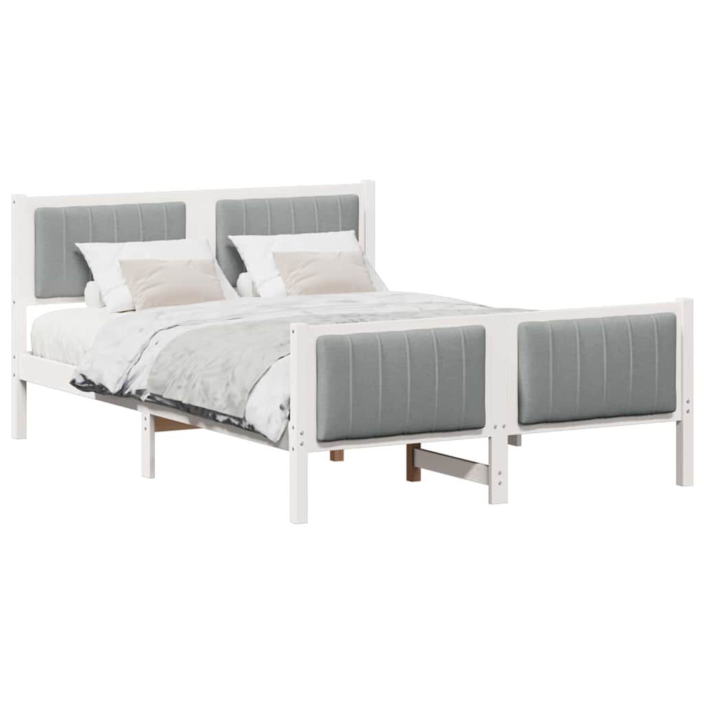 vidaXL Lovos rėmas Balta ir šviesiai pilka 140 x 190 cm Pušies masyvas