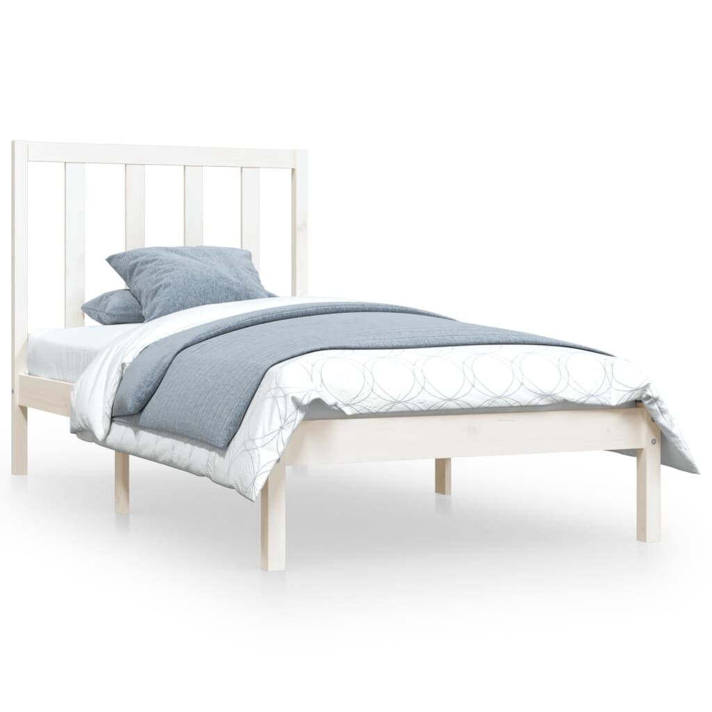 vidaXL Lovos rėmas, baltos spalvos, 100x200cm, pušies medienos masyvas