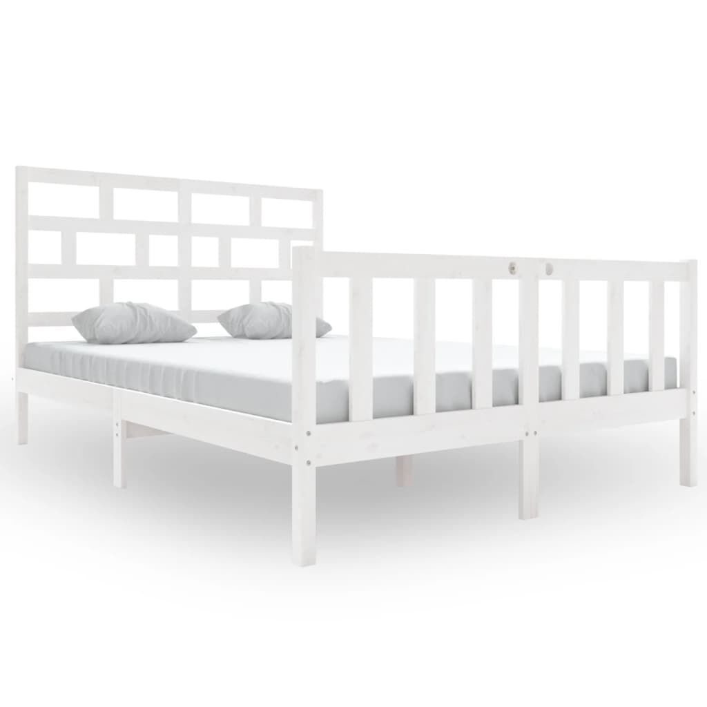 vidaXL Lovos rėmas, baltos spalvos, 120x200cm, pušies medienos masyvas