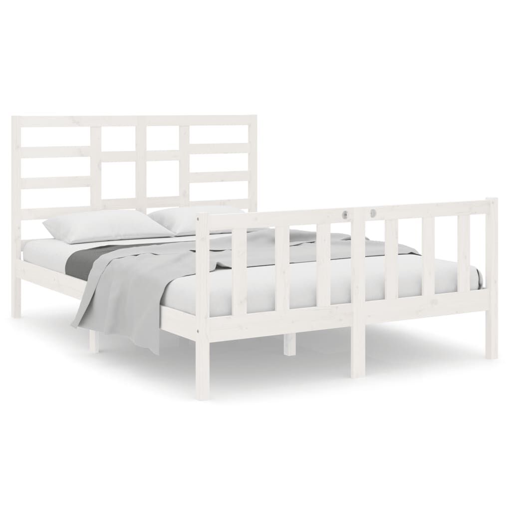 vidaXL Lovos rėmas, baltos spalvos, 140x190cm, medienos masyvas