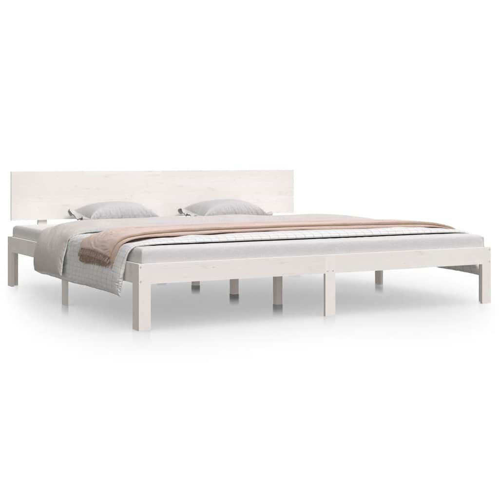 vidaXL Lovos rėmas, baltos spalvos, 200x200cm, pušies medienos masyvas