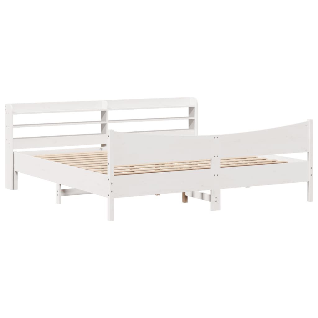 vidaXL Lovos rėmas su galvūgaliu, baltas, 200x200cm, pušies masyvas