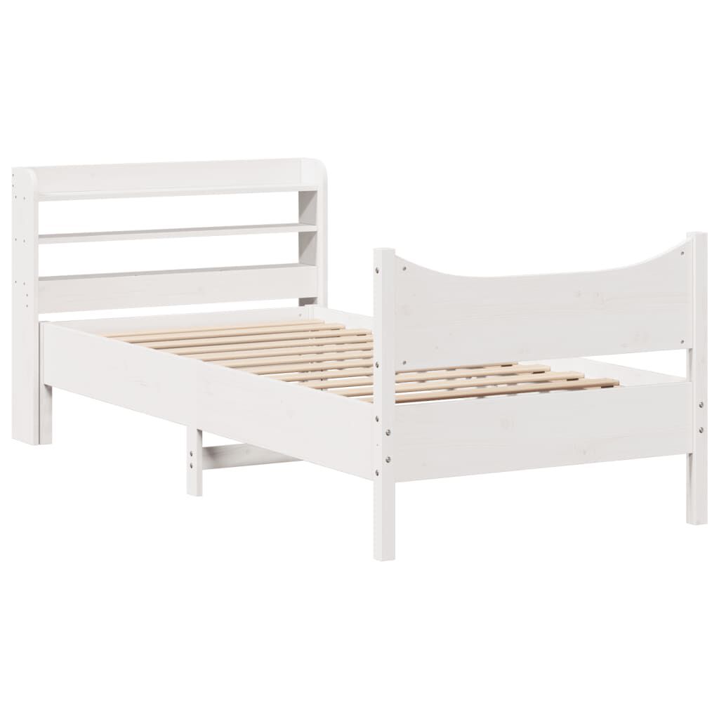vidaXL Lovos rėmas su galvūgaliu, baltas, 90x190cm, pušies masyvas