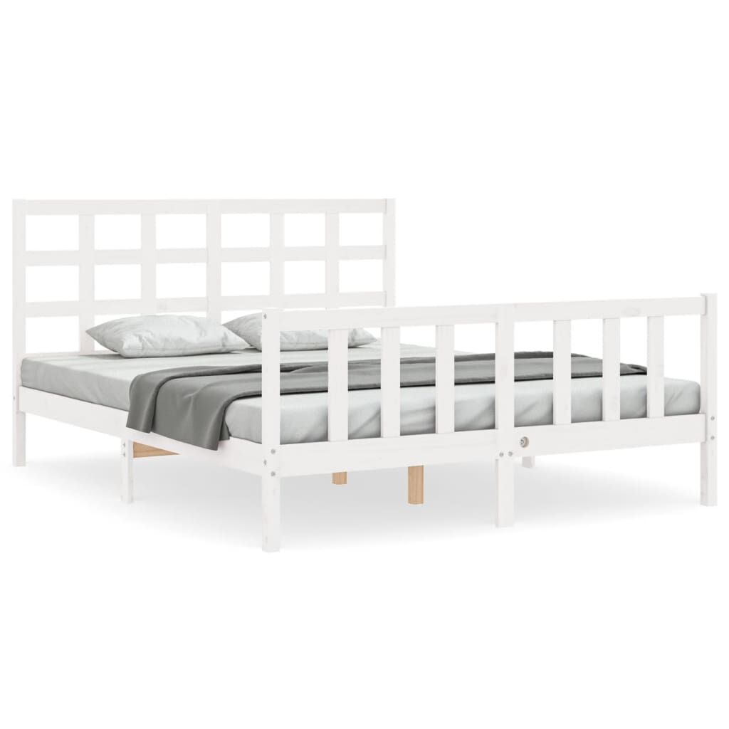 vidaXL Lovos rėmas su galvūgaliu, baltas, medienos masyvas, didelis
