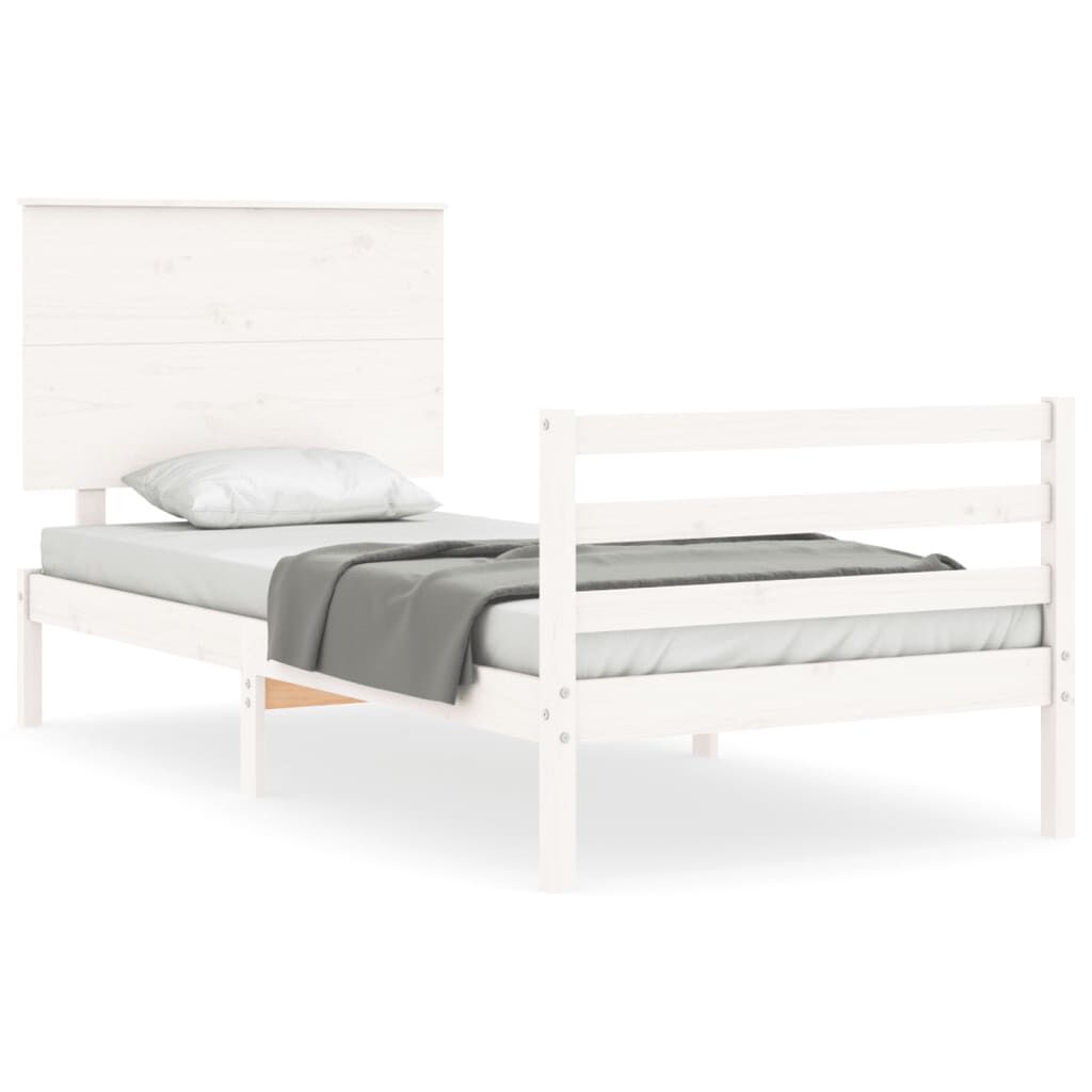vidaXL Lovos rėmas su galvūgaliu, baltas, medienos masyvas, vienvietis
