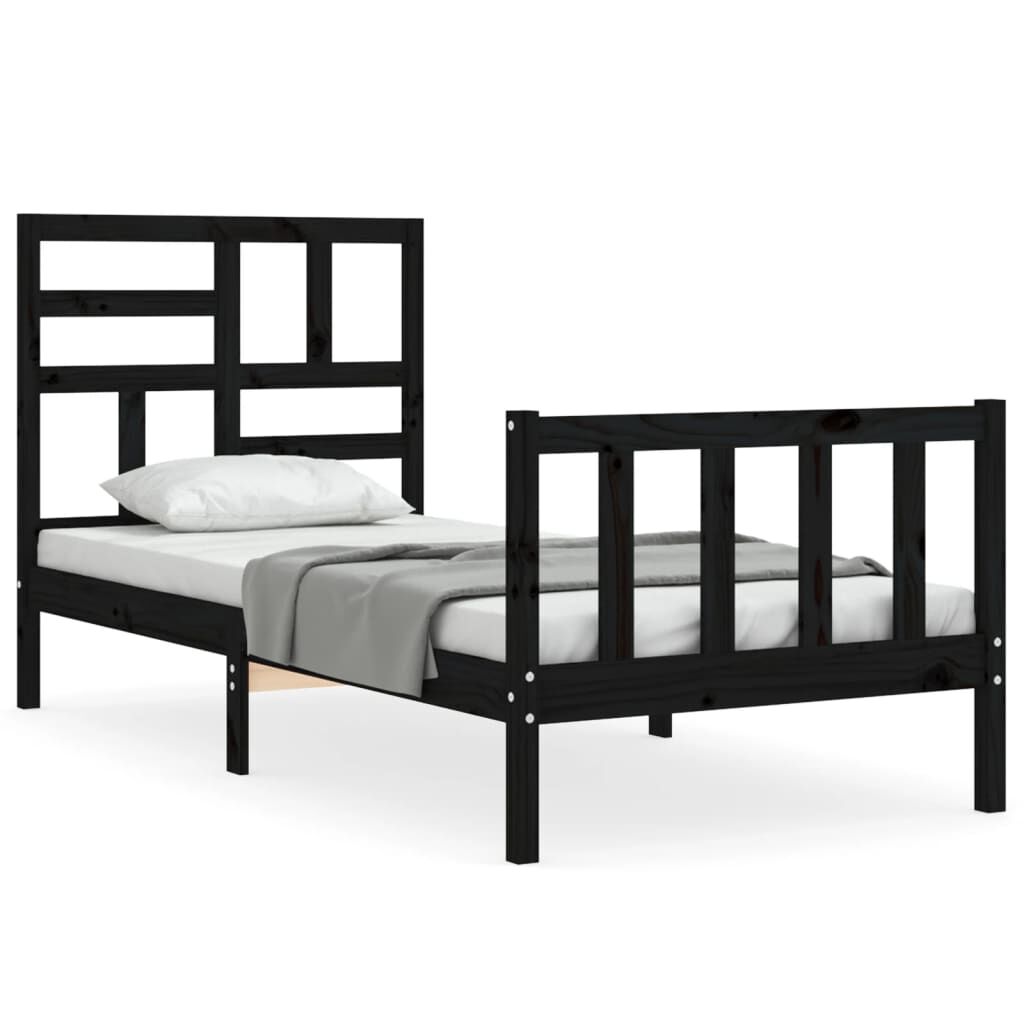 vidaXL Lovos rėmas su galvūgaliu, juodas, 100x200cm, medienos masyvas