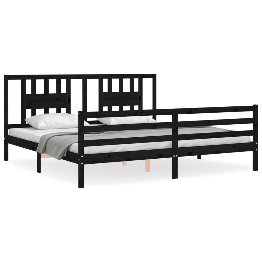 vidaXL Lovos rėmas su galvūgaliu, juodas, 200x200cm, medienos masyvas