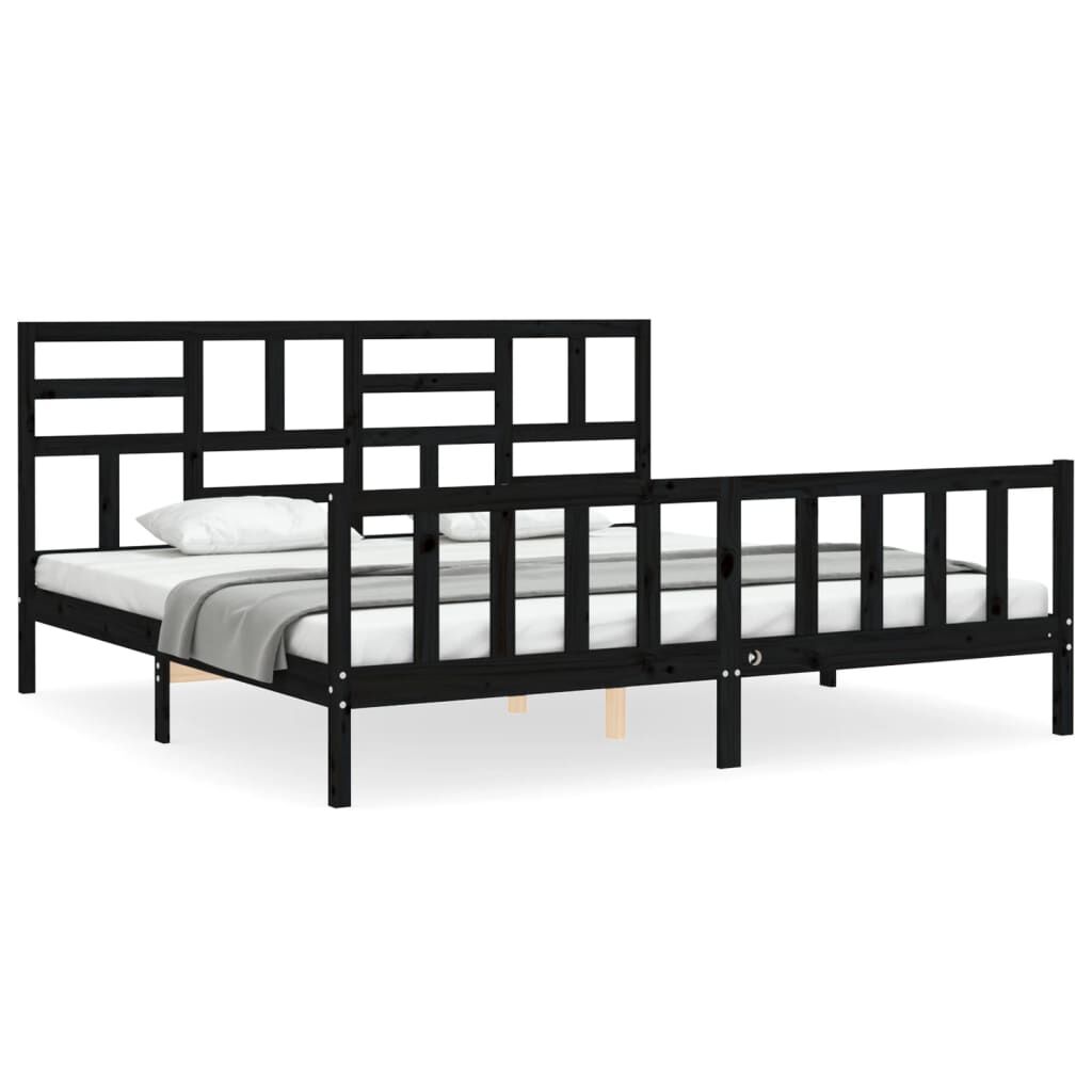 vidaXL Lovos rėmas su galvūgaliu, juodas, mediena, itin didelis