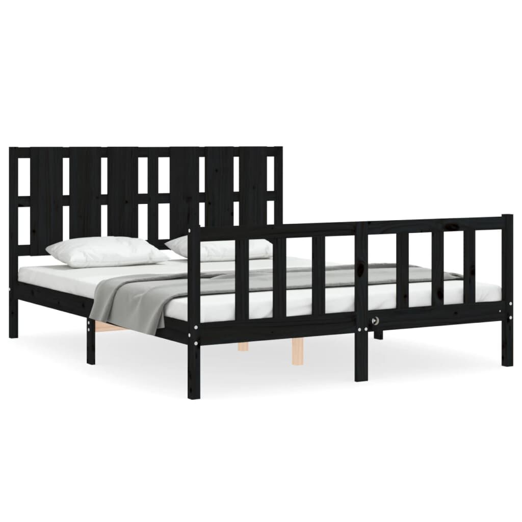 vidaXL Lovos rėmas su galvūgaliu, juodas, medienos masyvas, didelis