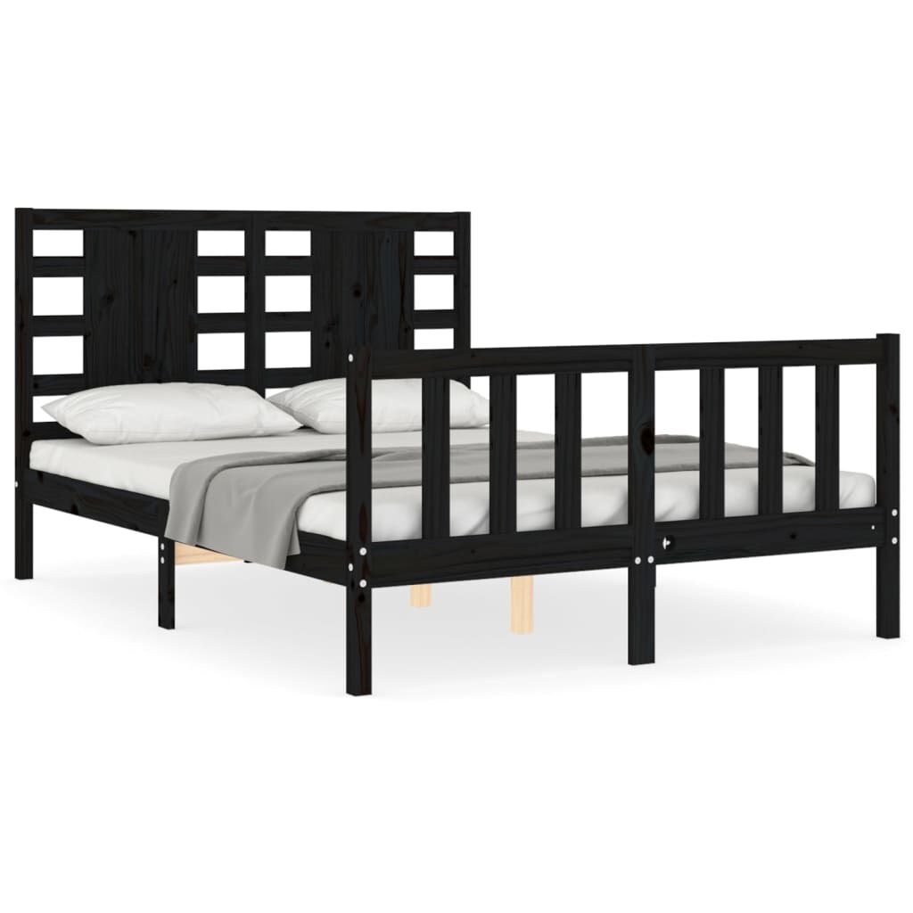 vidaXL Lovos rėmas su galvūgaliu, juodas, medienos masyvas, dvivietis
