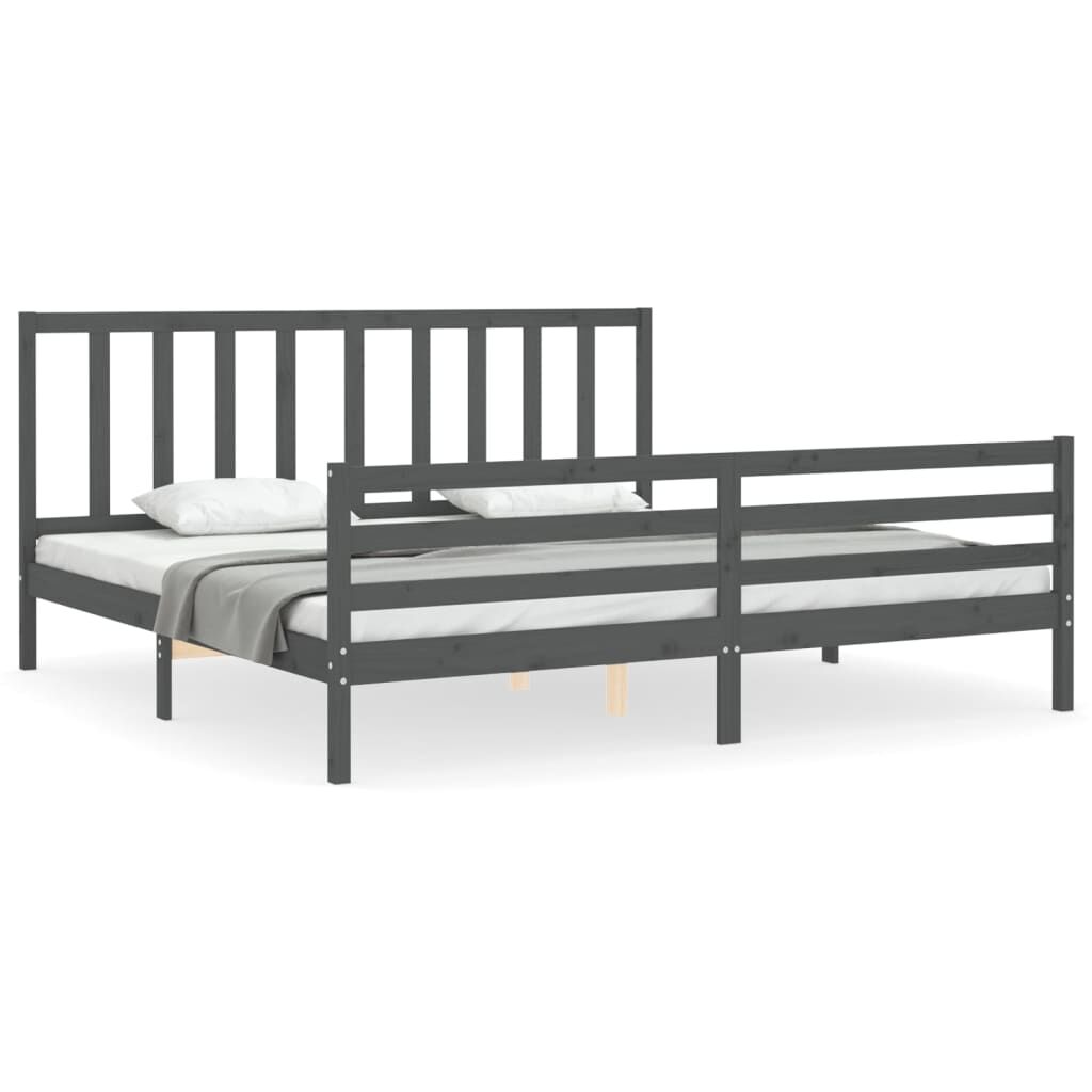 vidaXL Lovos rėmas su galvūgaliu, pilkas, 200x200cm, medienos masyvas