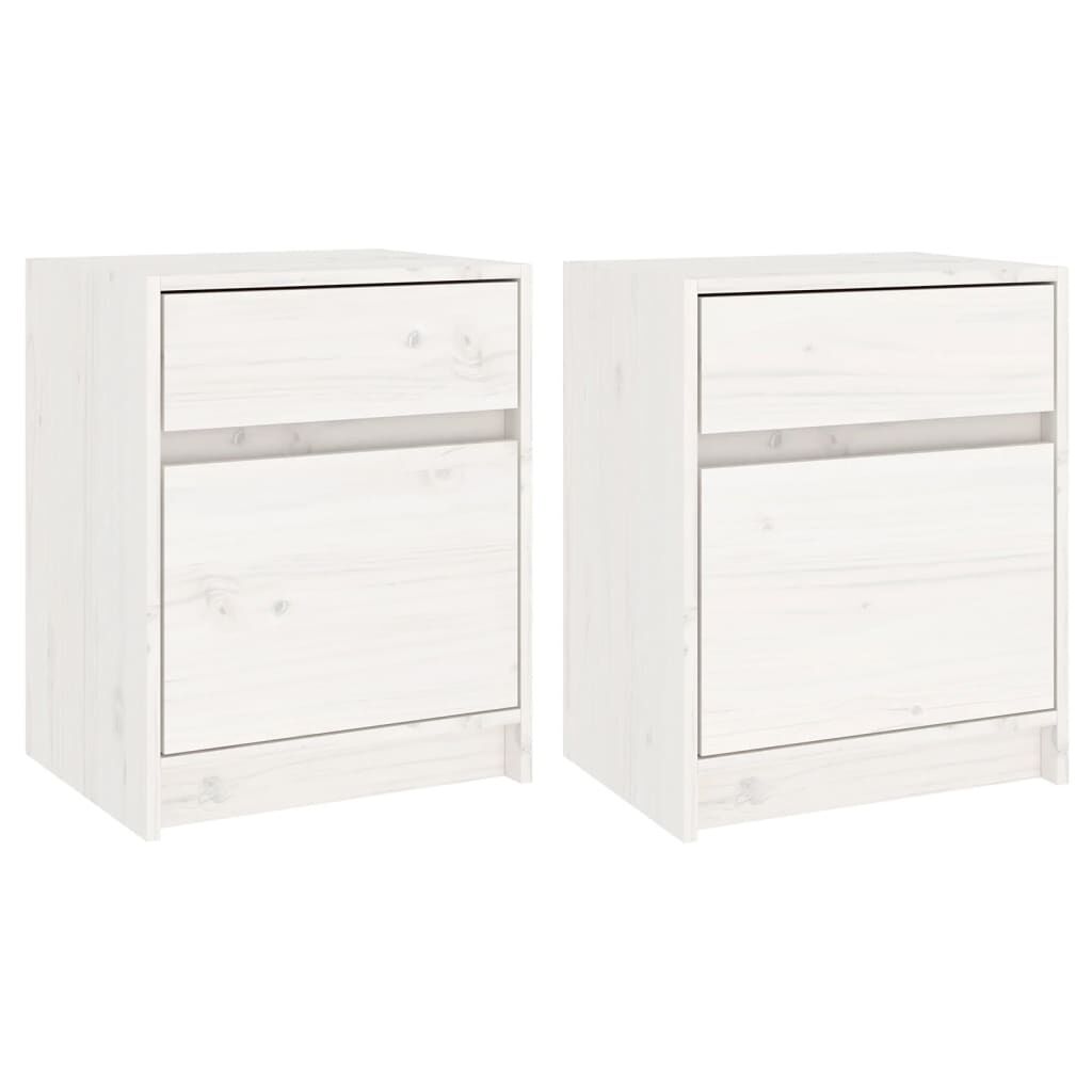 vidaXL Naktinės spintelės, 2vnt., baltos, 40x31x50cm, pušies masyvas