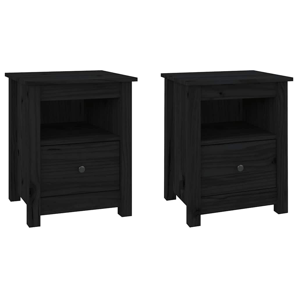vidaXL Naktinės spintelės, 2vnt., juodos, 40x35x49cm, pušies masyvas