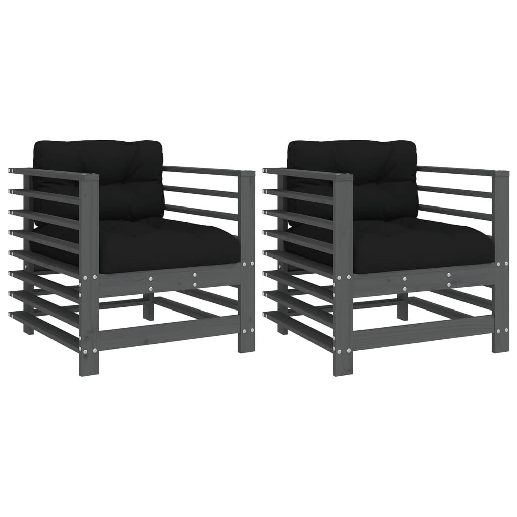 vidaXL Sodo kėdės su pagalvėlėmis, 2vnt., pilkos, pušies masyvas