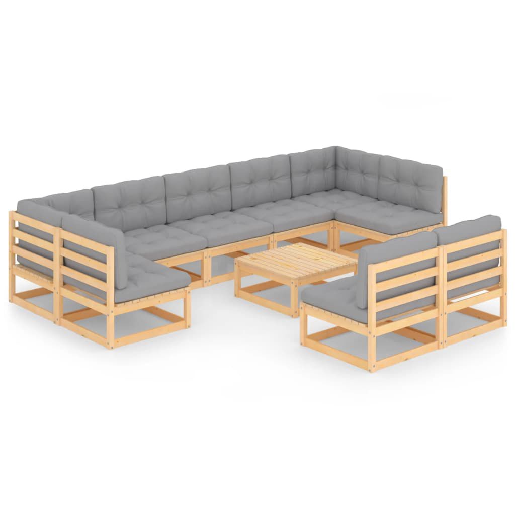 vidaXL Sodo komplektas su pagalvėlėmis, 10 dalių, pušies masyvas