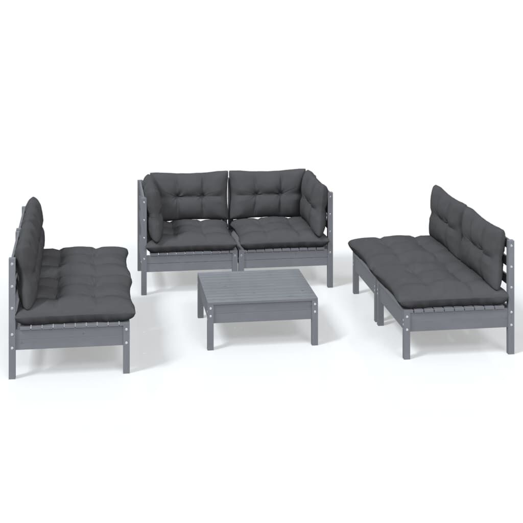 vidaXL Sodo komplektas su pagalvėlėmis, 7 dalių, pušies masyvas