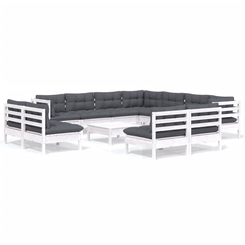 vidaXL Sodo komplektas su pagalvėmis, 12 dalių, baltas, pušies masyvas