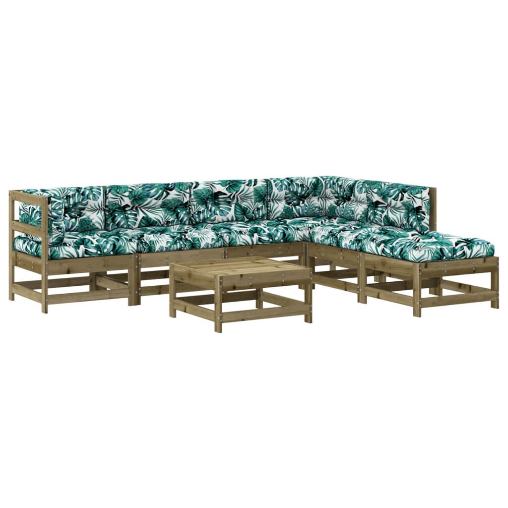 vidaXL Sodo poilsio komplektas su pagalvėlėmis, 7 dalių, pušis