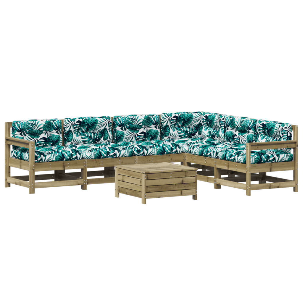 vidaXL Sodo poilsio komplektas su pagalvėlėmis, 7 dalių, pušis
