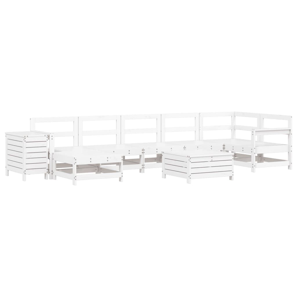 vidaXL Sodo sofos komplektas, 9 dalių, baltas, pušies medienos masyvas