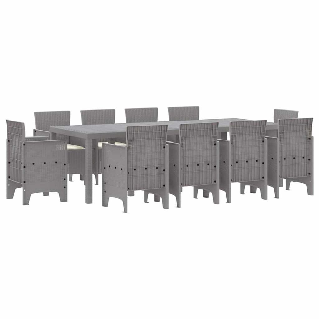 vidaXL Sodo valgomojo komplektas 11 pcs Šviesiai pilka Polt ratanas