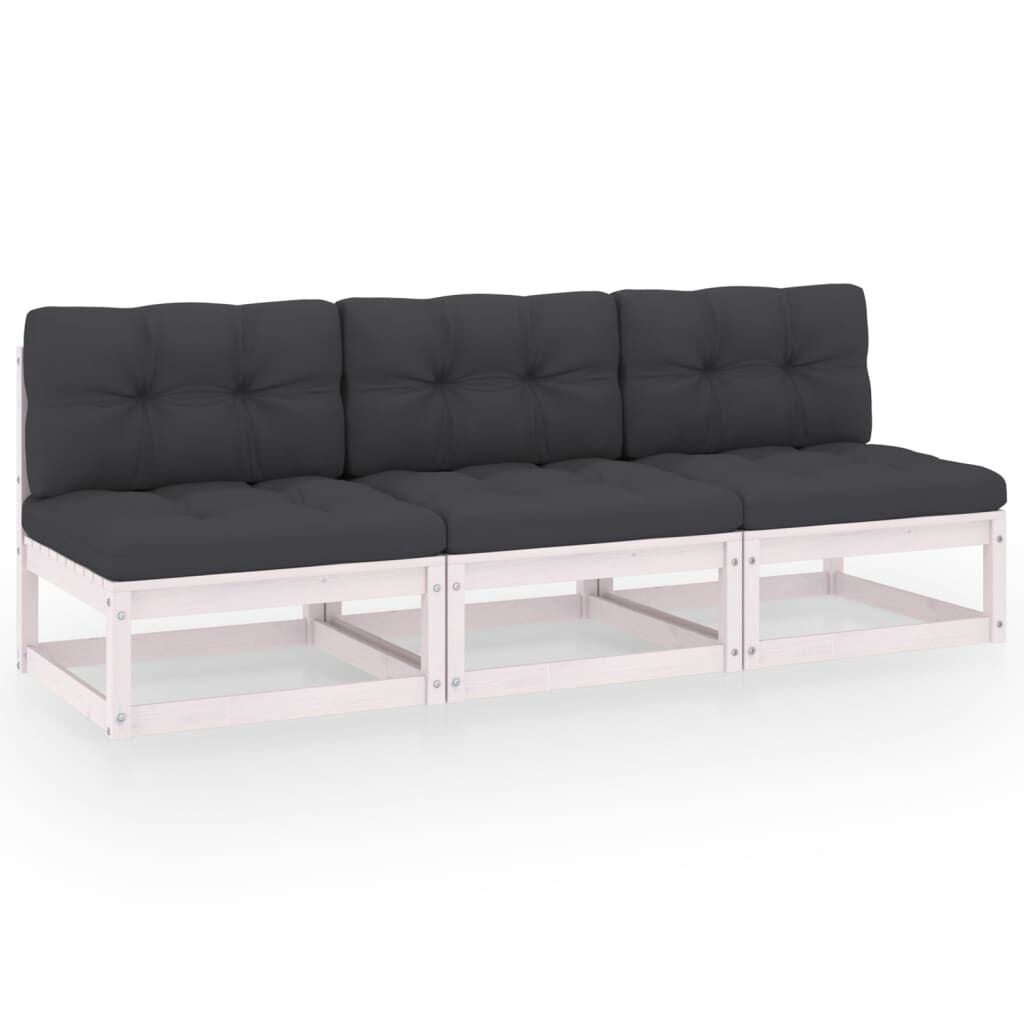 vidaXL Trivietė sofa su pagalvėlėmis, pušies medienos masyvas