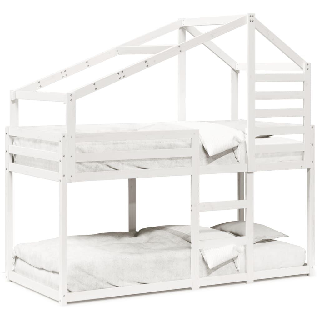 vidaXL Vaikiška lova su stogeliu, balta, 90x190cm, pušies masyvas