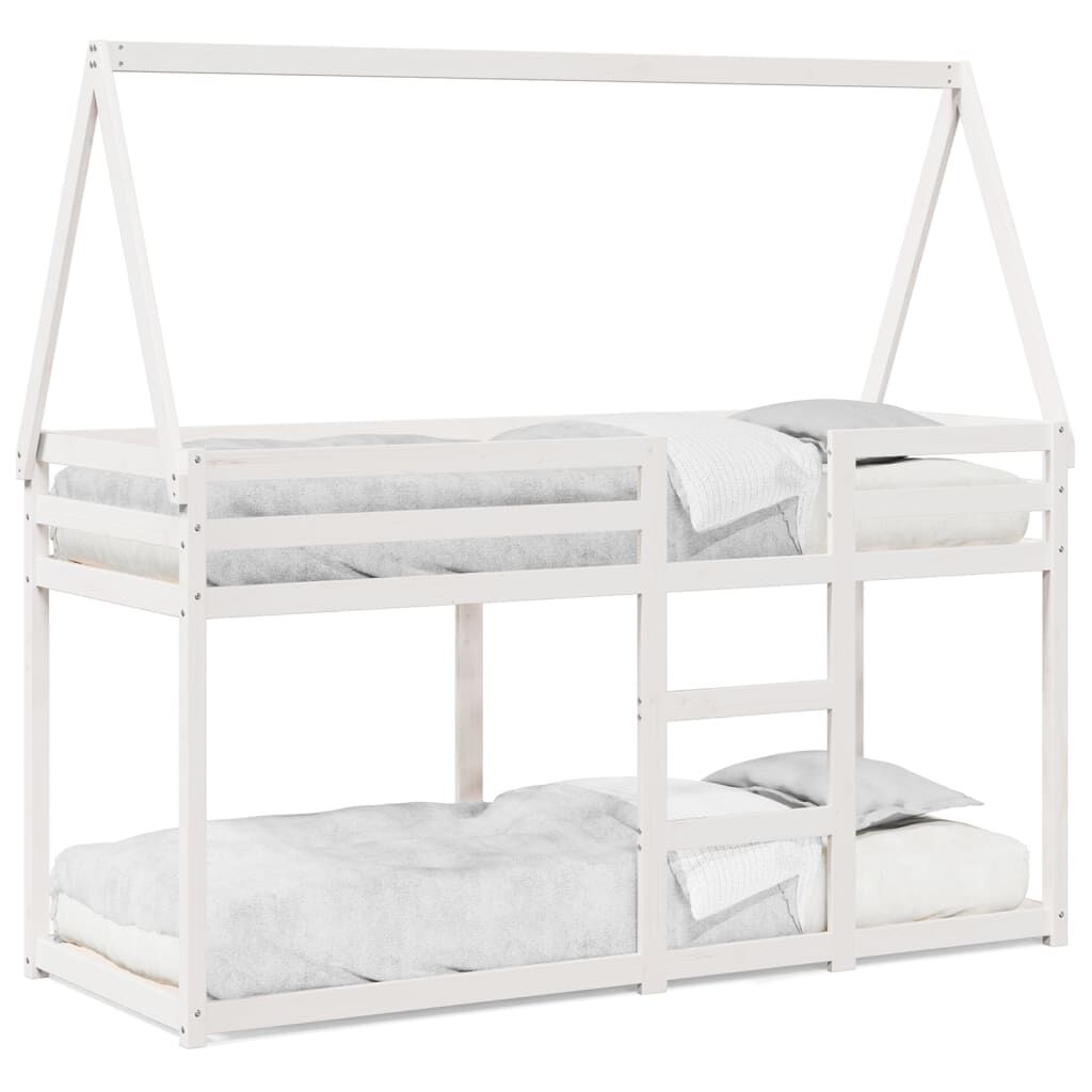 Ši vaikiška dviaukštė lova su stogu yra elegantiška ir funkcionali, tad ji taps puikia bet kokio ribotos erdvės kambario detale.
