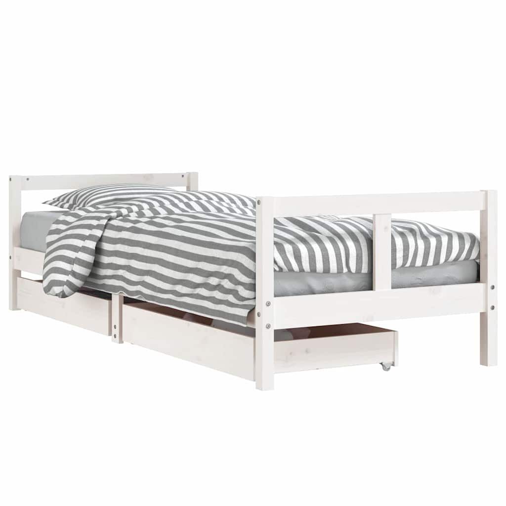 vidaXL Vaikiškos lovos rėmas su stalčiais, baltas, 80x200cm, pušis