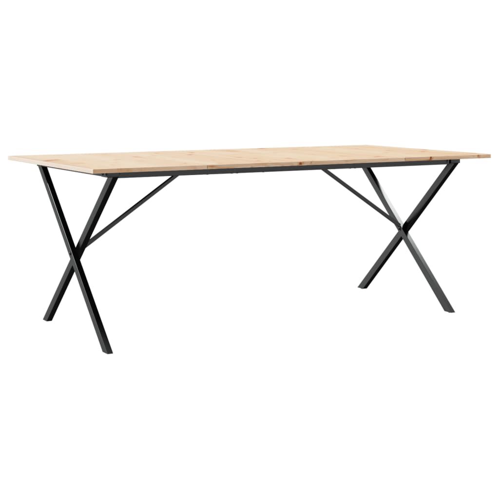 vidaXL Valgomojo stalas, 200x100x75cm, pušis ir plieninis, X formos rėmas