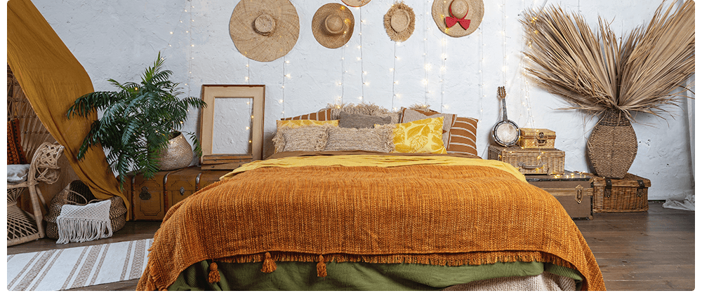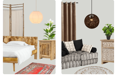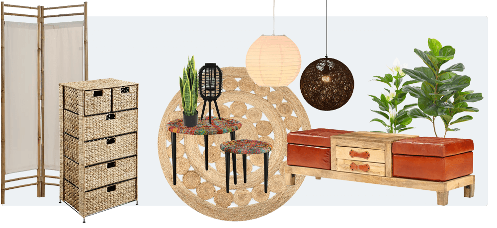 Nėra dviejų identiškų bohemiškų stilių. Tai – puikus stilius tiems, kurie nori sukurti kažką unikalaus. Bohemiški baldai yra pagaminti iš tokių natūralių medžiagų, kaip ratanas, bambukas, vytelės, džiutas, sizalis ir perdirbta mediena. Šis stilius leis dar kartą nukeliauti į aplankytas vietas, – tiesiog padėk atsivežtus suvenyrus į gražią spintelę ar ant šoninio staliuko.