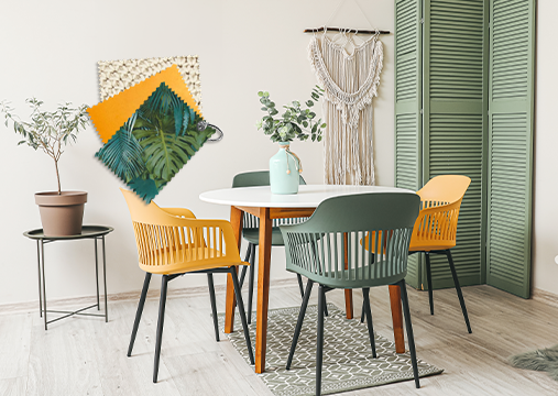 Raskite džiaugsmą žaidžiant su skirtingomis formomis ir kontrastingais dizainais, renkantis sofas, valgomąsias kėdes arba fotelius. Pasirinkite patogumą, bet kiekviename elemente įdėkite šiek tiek smagumo ir spalvų.