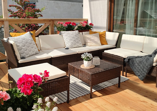 3. Protingai naudokite savo baldus: išdėliokite lauko elementus įvairiais išdėstymais, kad jie atitiktų įvairias veiklas – nuo susibūrimų organizavimo iki ramių akimirkų.