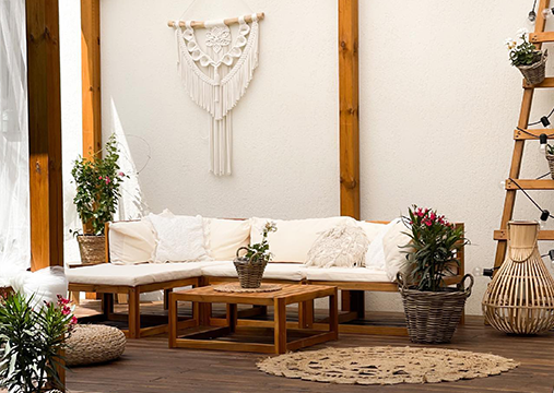 2. Būkite natūralūs: rinkitės iš medžio arba ratano pagamintus baldus, kad jie susilietų su gamta ir pagerintumėte lauko erdvės ramybę.